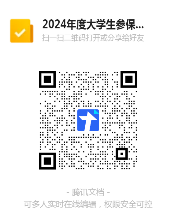 三、请学院尽快落实尚未缴纳基本医疗参保费的同学(尤其是申请了各种助学贷款等缓缴学费的同学)务必在12月15日前,微信扫描下方《2024年度大学生参保登记》在线收集表二维码,完成参保信息登记,并于登记后1-2个工作日内在“成都税务”微信公众号上自行缴费(每人380元/年)。