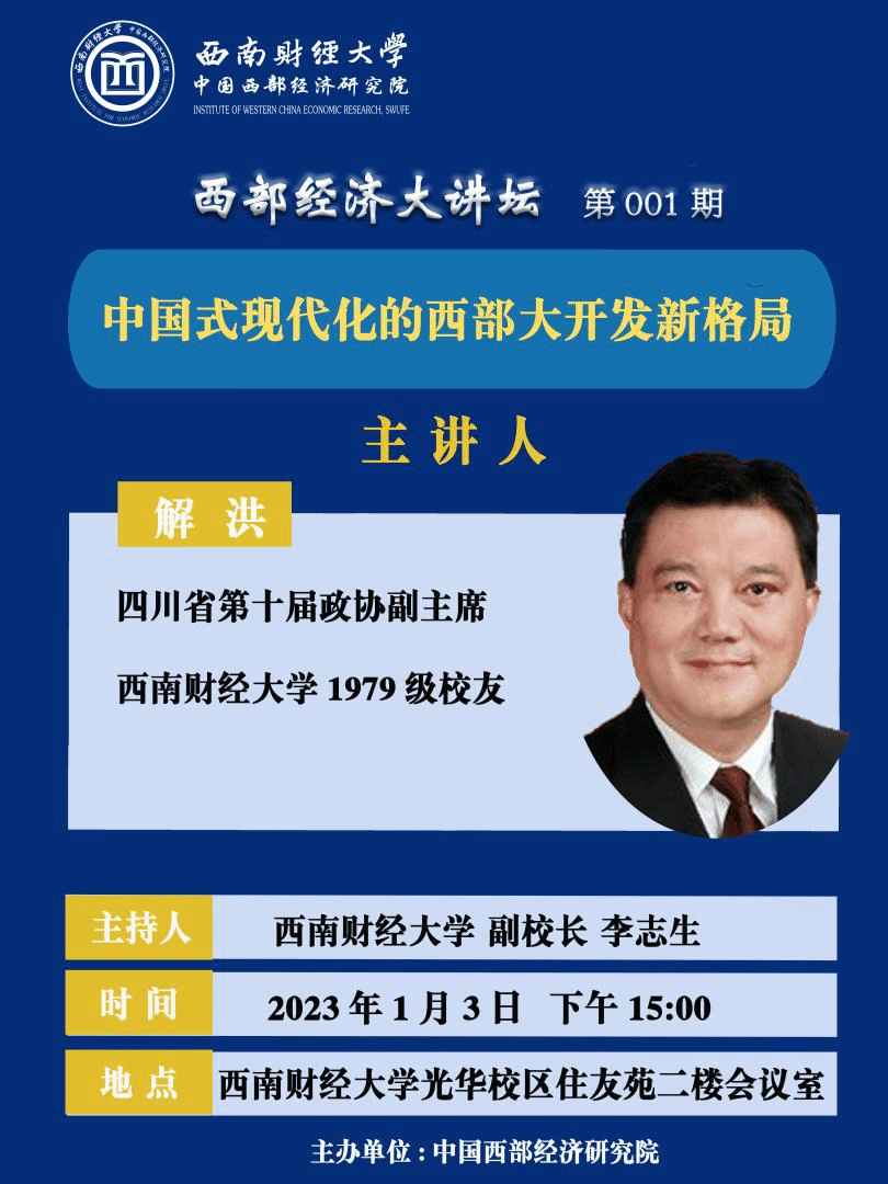 党的二十大提出了中国式现代化的完整内涵,提出实现中华民族伟大复兴的中国梦,以中国式现代化推进中华民族伟大复兴,统揽伟大斗争、伟大工程、伟大事业、伟大梦想,明确“五位一体”总体布局和“四个全面”战略布局,讲座将围绕中国式现代化及推动西部大开发形成新格局进行深入探讨。
