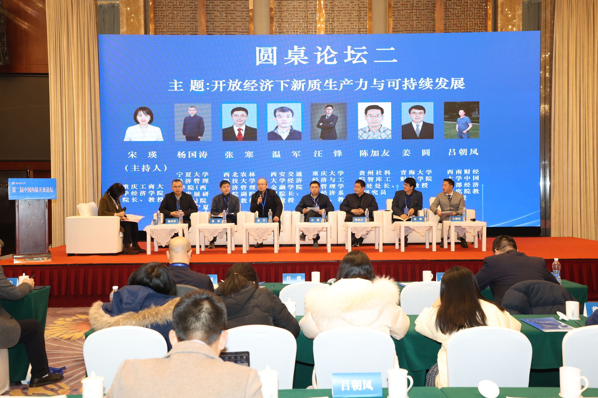 重庆工商大学经济学院院长宋瑛主持以“开放经济下新质生产力与可持续发展”为主题的圆桌论坛。宁夏大学经济管理学院院长杨国涛教授、西北农林科技大学经济管理学院副院长张寒教授、西安交通大学经济金融学院副院长温军教授、重庆大学经济与工商管理学院经济系主任汪锋教授、贵州社科院智库工作处处长陈加友研究员、青海大学财经学院姜圆副教授、91黑料