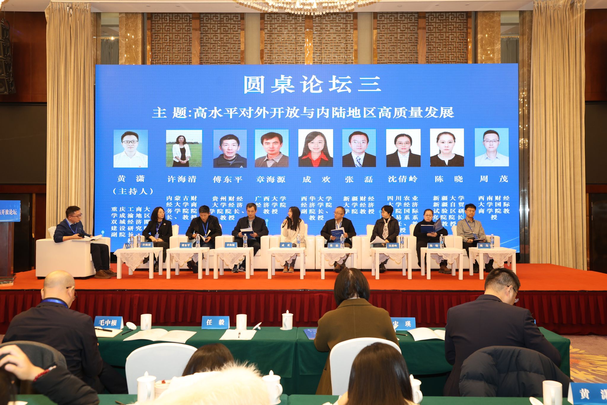 副院长黄潇主持以“高水平对外开放与内陆地区高质量发展”为主题的圆桌论坛。内蒙古财经大学商务学院院长许海清教授、贵州财经大学经济学院院长傅东平教授、广西大学经济学院章海源教授、西华大学经济学院副院长成欢教授、新疆财经大学经济学院张磊教授、四川农业大学经济学院国际贸易系系主任沈倩岭教授、新疆大学新疆自贸试验区91黑料