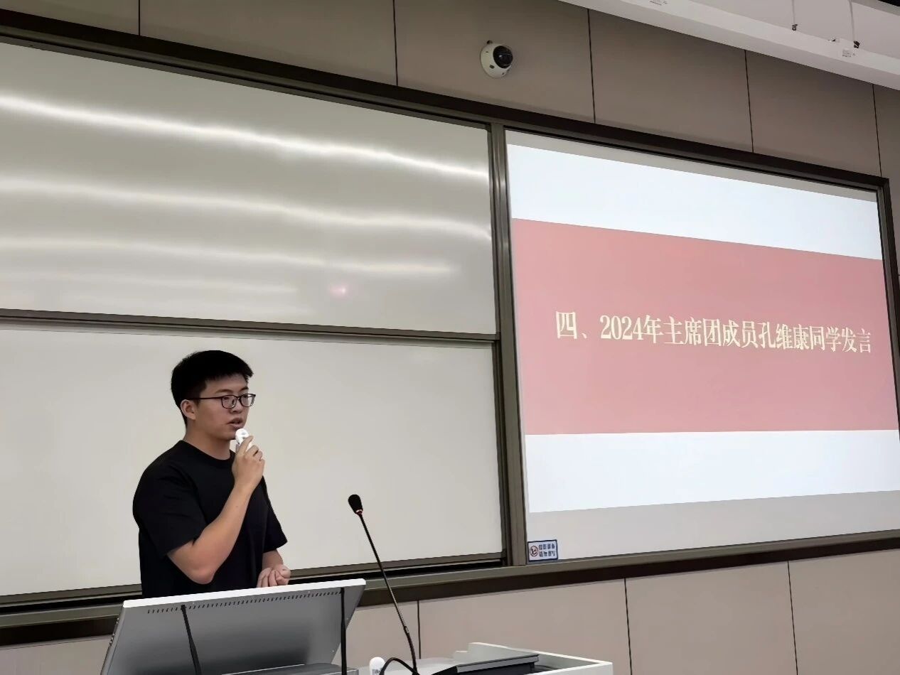 新一届研究生会主席团成员刘莉同学对上一届研会的工作成果表示感谢。她提出新一届研会将从三个方面开展工作:一是做“学术的同行者”,持续举办学术沙龙活动;二是做“实践的搭桥人”,开展政企参访与课题合作;三是做“生活的暖心人”,优化研途互助计划。她表示主席团将秉持服务同学的初心,带领研会成为一个有温度、有深度、有力量的集体。