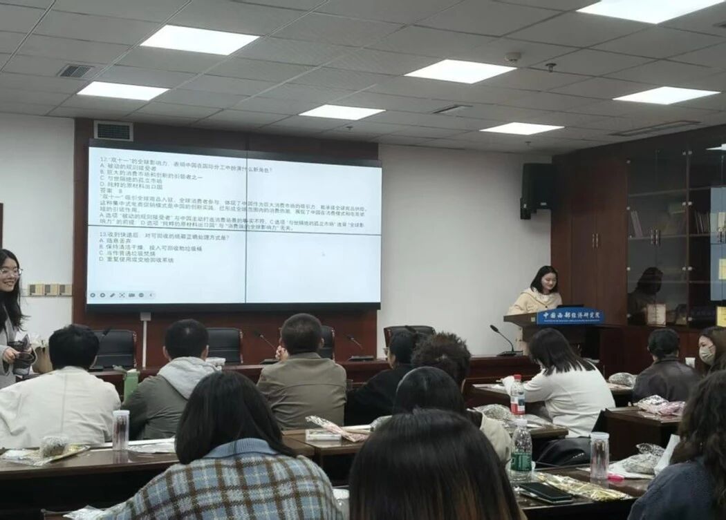 活动伊始,陈薇朵同学带领大家认真学习习近平总书记关于劳动教育的重要论述并抛出“青年如何在理性消费中坚守勤俭节约的优良传统?”等问题组织大家讨论。现场还设置了劳动知识有奖问答环节,同学们积极抢答,在互动中深化了对劳动精神的理解。