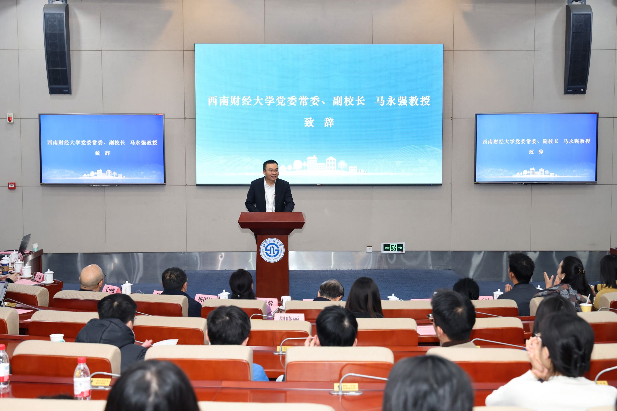 马永强代表学校致词。他指出,实施乡村振兴战略,是以习近平同志为核心的党中央着眼党和国家事业全局作出的重大决策。党的二十届四中全会明确提出“加快农业农村现代化,扎实推进乡村全面振兴”。学校始终将服务国家战略作为己任,近年来通过建设乡村振兴博士服务站等创新举措,推动财经学科与“三农”需求深度对接,为乡村振兴贡献了西财智慧和力量。他强调,要以党的二十届四中全会精神为指引,贡献乡村振兴的西财实践、要以典型案例为牵引,提炼中国式现代化的乡村样本、要以协同育人为抓手,培育懂农业爱农村的时代新人。
