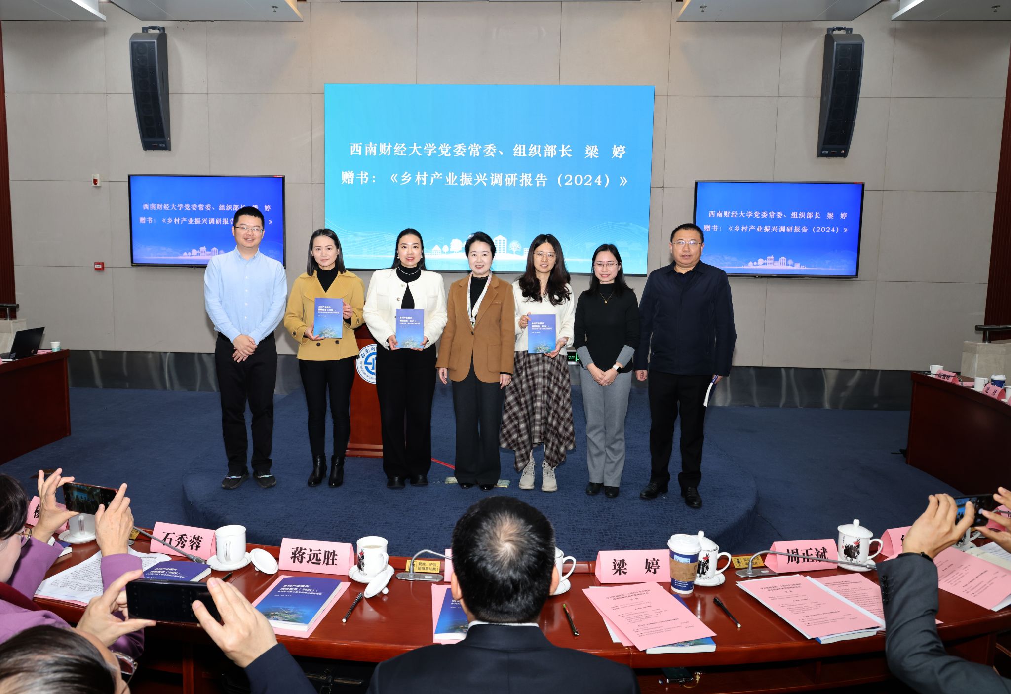 梁婷代表学校向与会代表赠送了由乡村振兴博士服务站编著的《乡村产业振兴调研报告(2024)》。